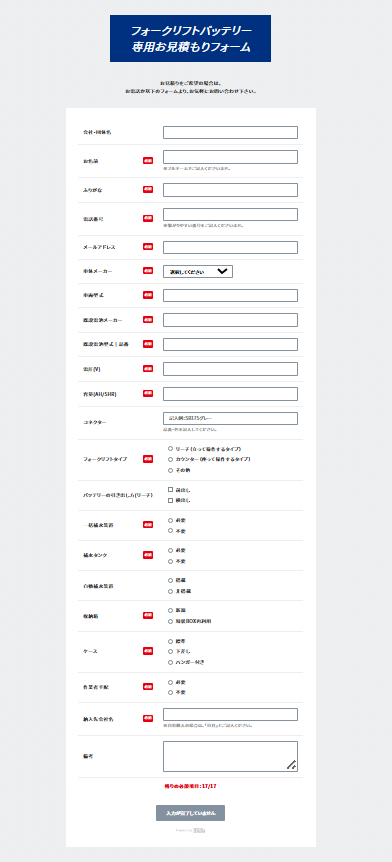 フォークリフトバッテリー専用の見積フォームを用意しました。