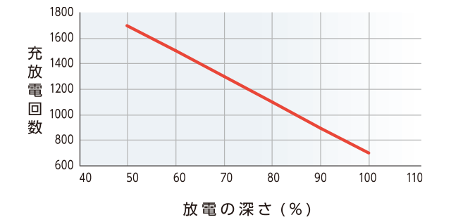 このサイクル数や放電深さを意識して、なるべく1回1回の充電を適切に行うことが重要です。