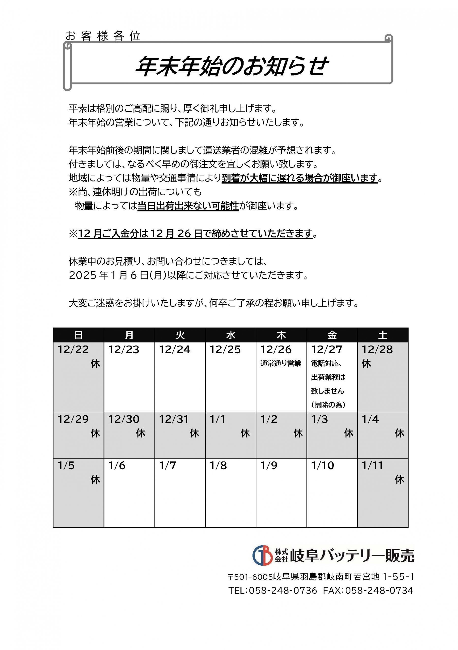 2024年年末年始のお知らせ(2024.12.28-2025.1.5)
