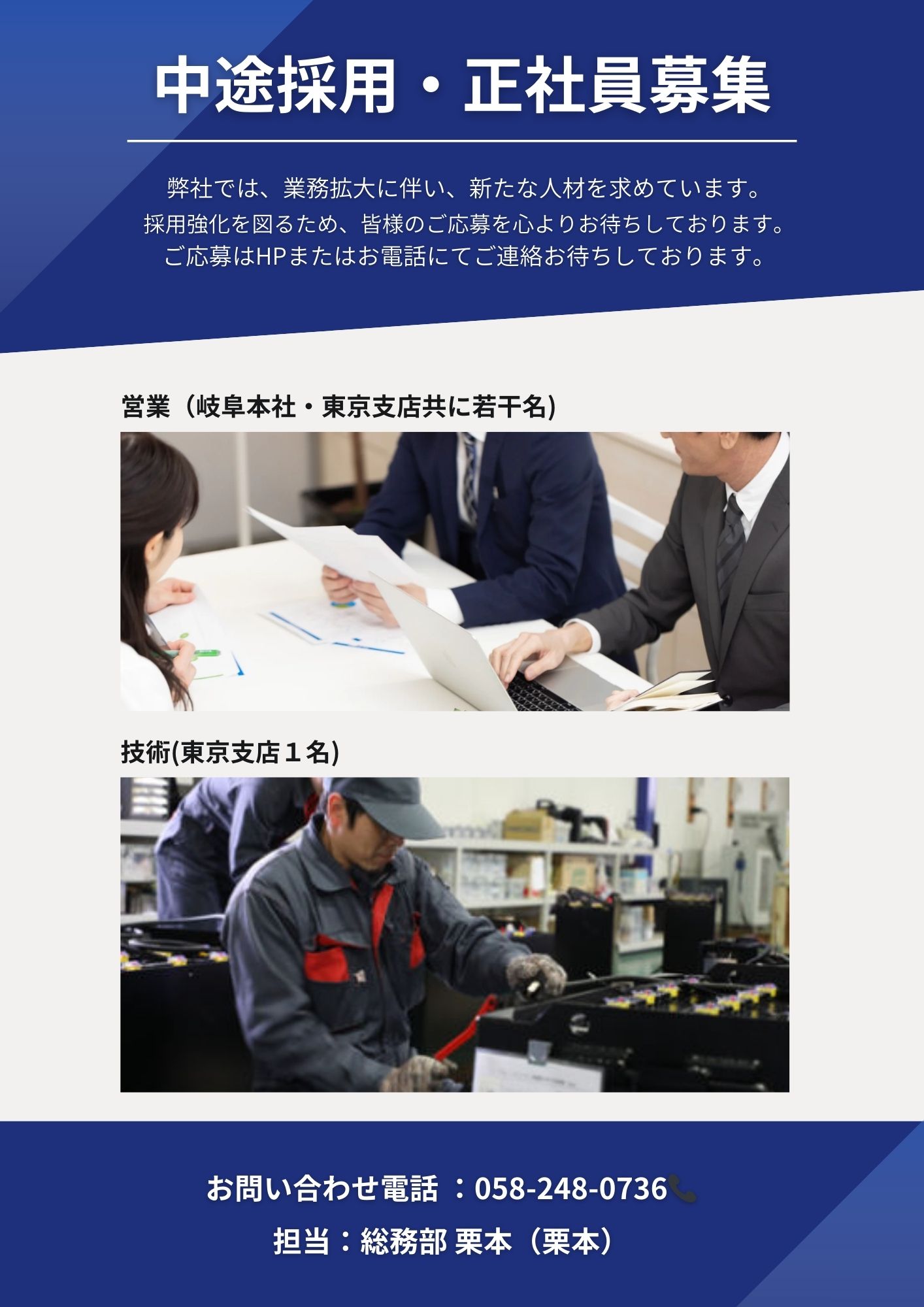 求人募集(岐阜本社:営業若干名/東京支店:営業若干名・技術1名)