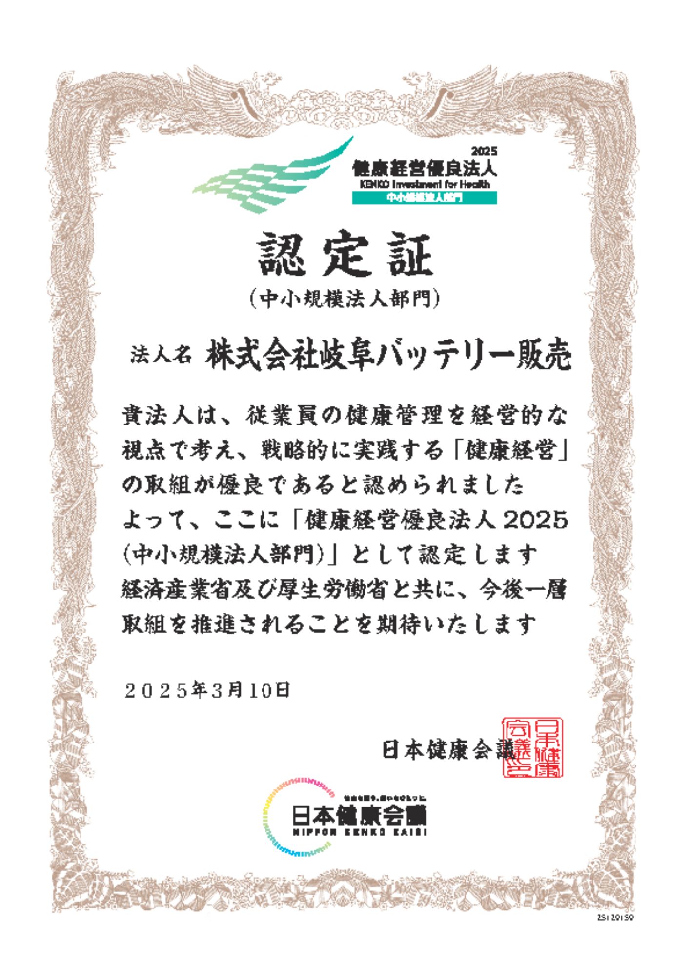 健康経営優良法人2025 認定